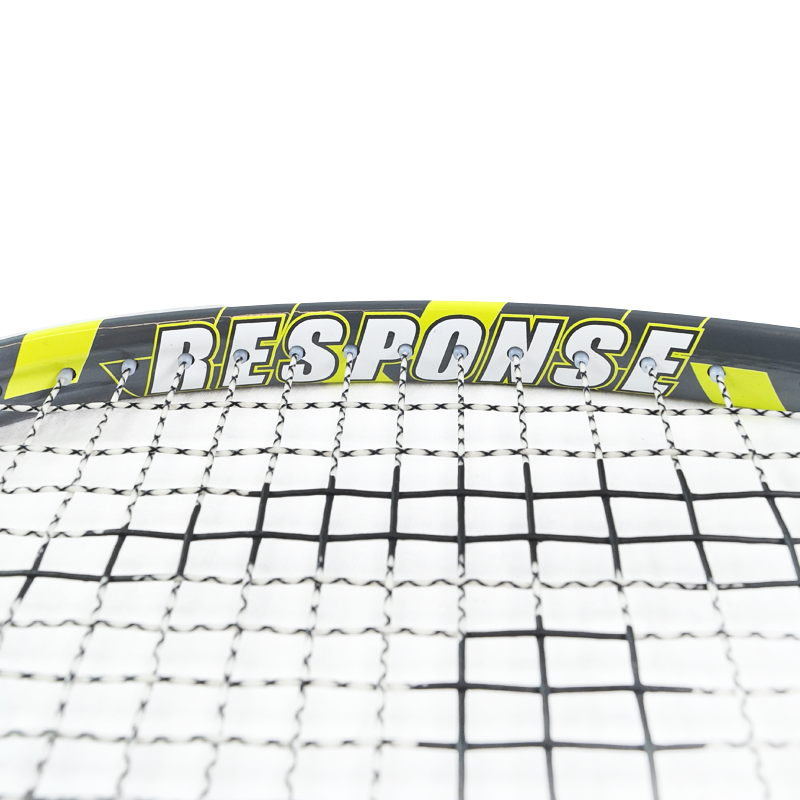 Harrow Response (Grey/yellow) Squashketcher med et dråbeformet hoved som giver den en god power.
